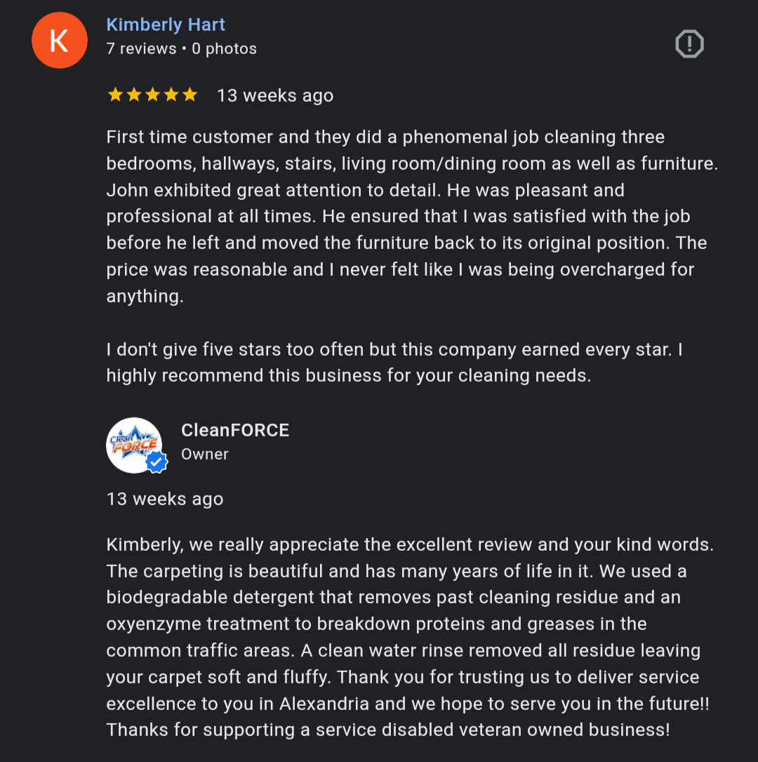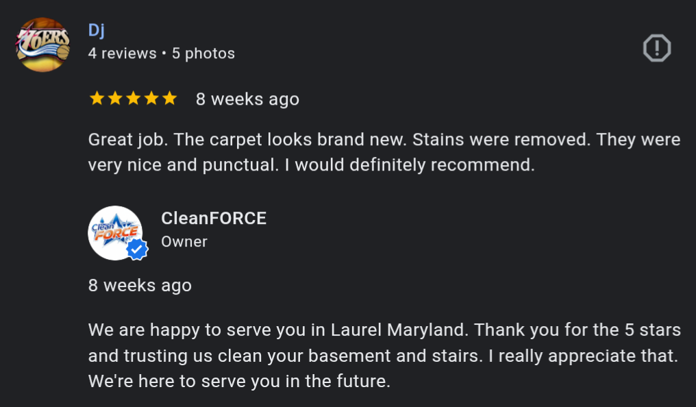 With years of experience in the electrical industry, CleanFORCE has earned a reputation for quality, value and dependability. Our certified technicians and professional office staff are committed to providing service excellence. We are BBB accredited and 5 star rated in Maryland.