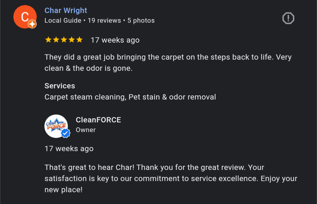 We deliver dependable cleaning solutions tailored to your needs. Our team of skilled technicians and staff are trained to surpass every customers’ expectations. Providing a pleasant experience from start to finish.